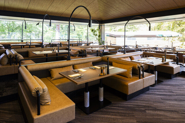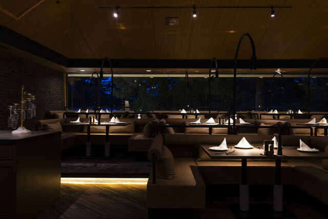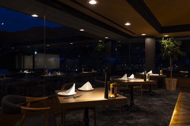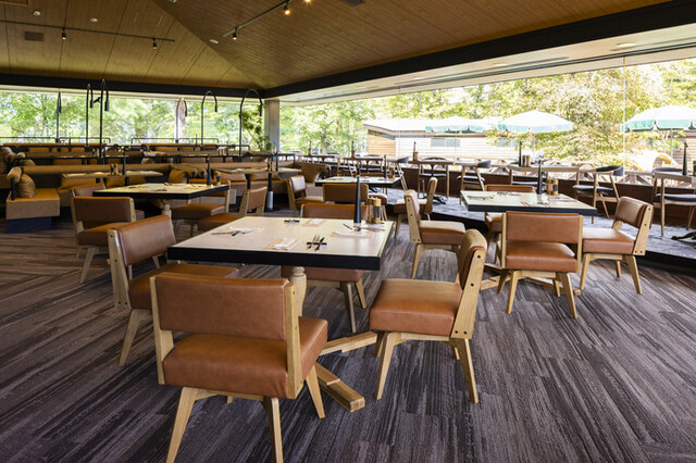 ゲレンデが目の前に広がる景観は1年中自然の表情を楽しめます。木とレンガを基調とした落ち着いた内観は、モーニング~ディナーまでどの時間帯にもマッチ。CHILL、HOUSE系の心地が良く感じる曲を聴きながら、緑に囲まれたオールデイダイニングでお食事をどうぞ。