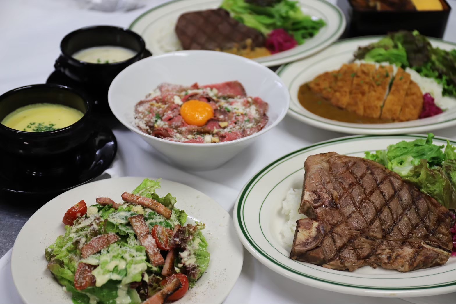**「薪焼きステーキプレート(3,000円)」**は、赤身肉の旨みをストレートに楽しめる一皿で、スキー後のエネルギーチャージにも最適です。